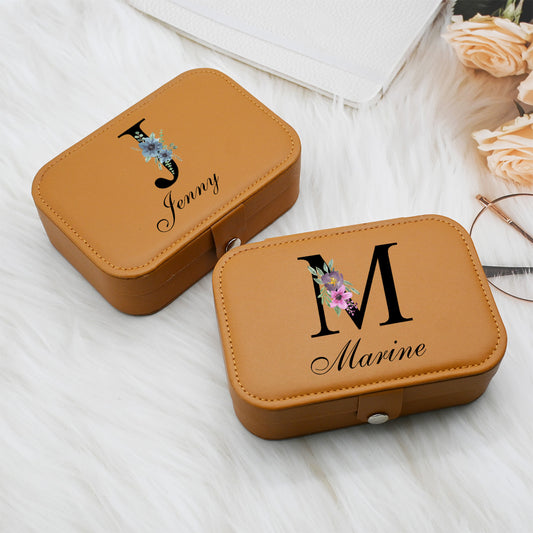 Personalized Jewelry Box, Leather Travel Jewelry Case for Women,Custom Jewelry Box with Floral Initial and Name,Birthday Gift for Her,Bridesmaid Proposal Gift (Copy)