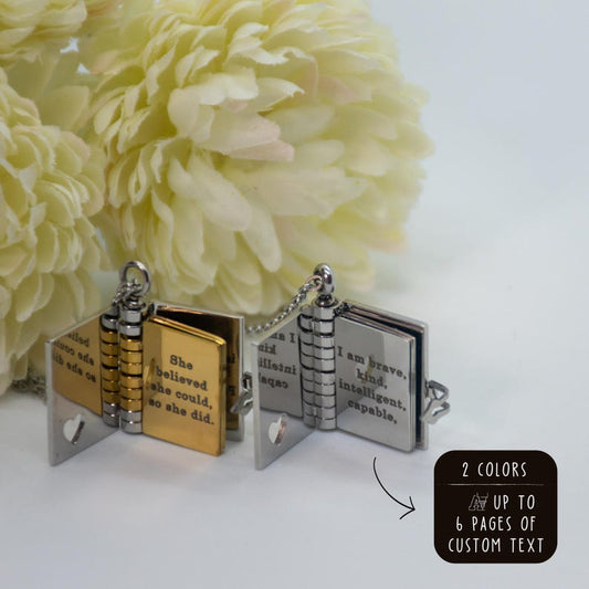 Personalized Silver Petite Book Locket Necklace Pendant Charm Message Necklace Bridesmaid Bridal Best Gift Keepsake Memory Gift for Her