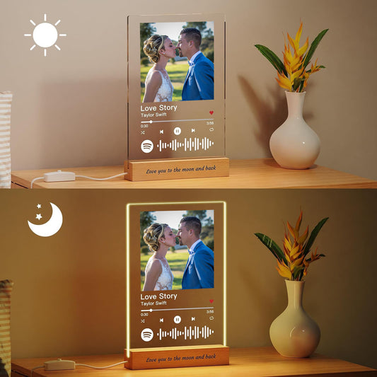 Personalised Music Song Plaque With Wood Base Customized Acrylic Song Plaque with Any Photo Song Any Playlist Music Gift Music Prints