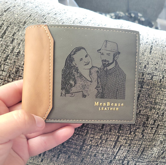 Personalized Custom Photo Mens Wallet,Engraved Picture Wallet with Box,PU Leather Wallet,Anniversary Gifts for Him,Christmas Gift for Dad