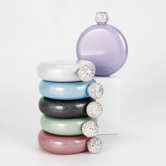 Personalized Round Flasks with Rhinestone Lid for Bridesmaid Gifts, Engraved Flask, Women's Flask, Travel Flask, Gift for Her, Maid of Honor