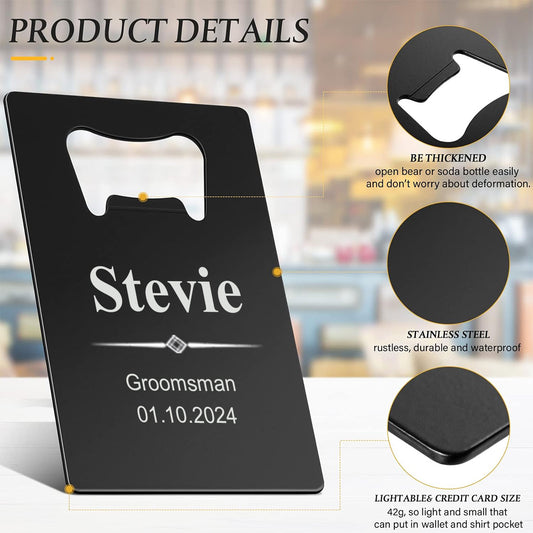 Personalized Black Flat Bottle Opener, Credit Card Size Beer Bottle Opener, Wedding Party Favor, Customized Groomsman Best Man Gift