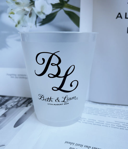 Custom Wedding Cups, Reception Bar Frosted Cups, Personalized Shatterproof Cups, Modern Wedding Decor, Signature Cocktails, Engagement Party